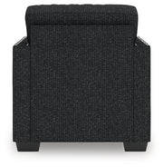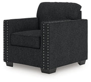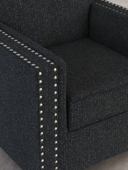 This stunning chair leaves a lasting impression. Its cozy cushions, chic coal-colored upholstery and striking nailhead trim are a perfect blend of comfort and contemporary design. And here's the showstopper‚ ambient red, white and blue LED lighting along the chair's base. The look is simply wow.